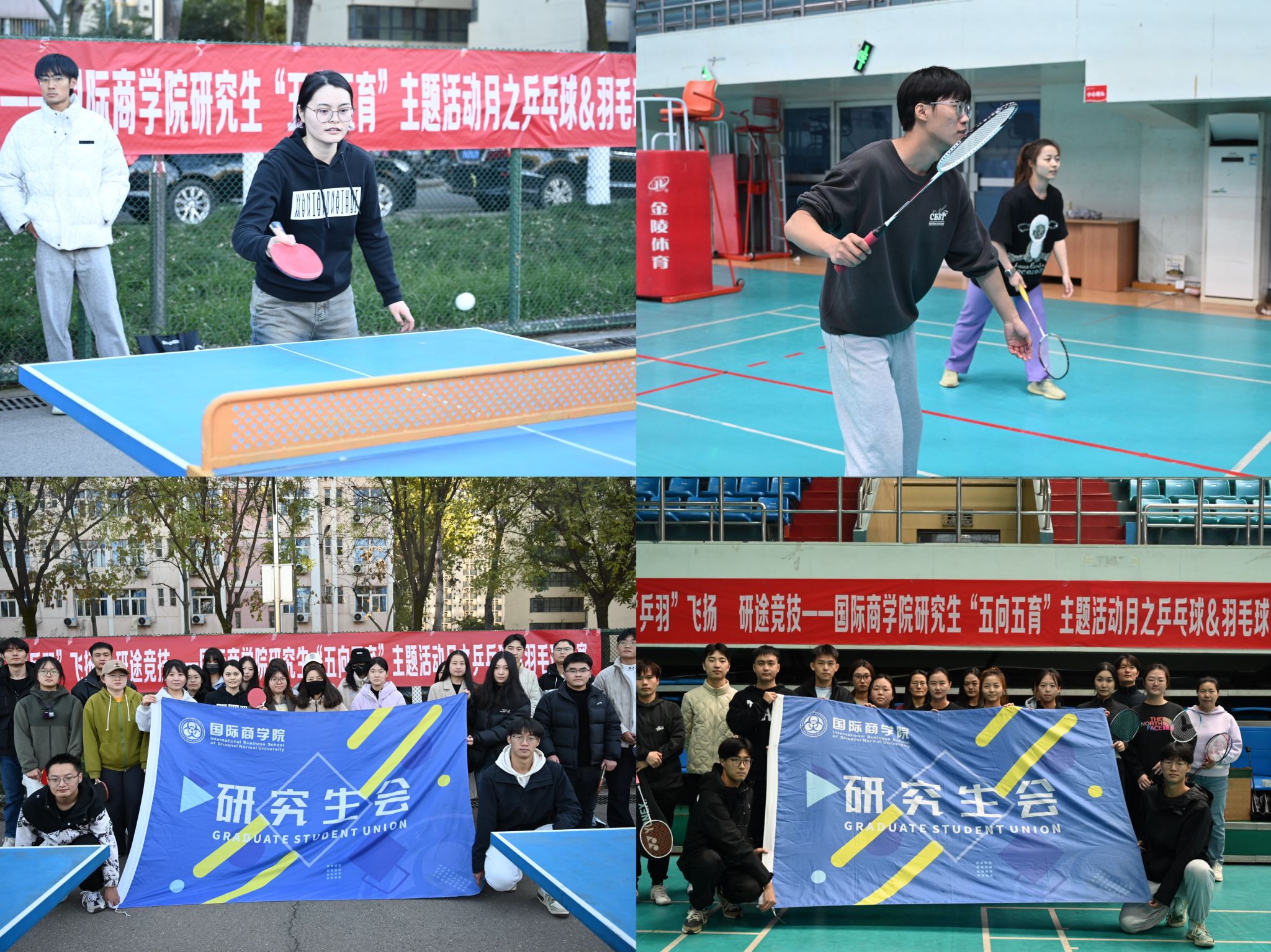 研究生会体育工作部顺利开展了乒乓球羽毛球比赛——“乒羽飞扬,研途竞技”。此次比赛中,乒乓球比赛设置了2个项目,羽毛球比赛设置了5个项目。所有选手都在赛场上全力以赴,尽情挥洒汗水,充分展现了永不放弃的拼搏精神和体育风采。以球会友,此次比赛不仅为选手们搭建了切磋球技,交流经验的平台,还在竞技交锋中深化了同窗情谊,增强了同心共赢的集体荣誉感。
