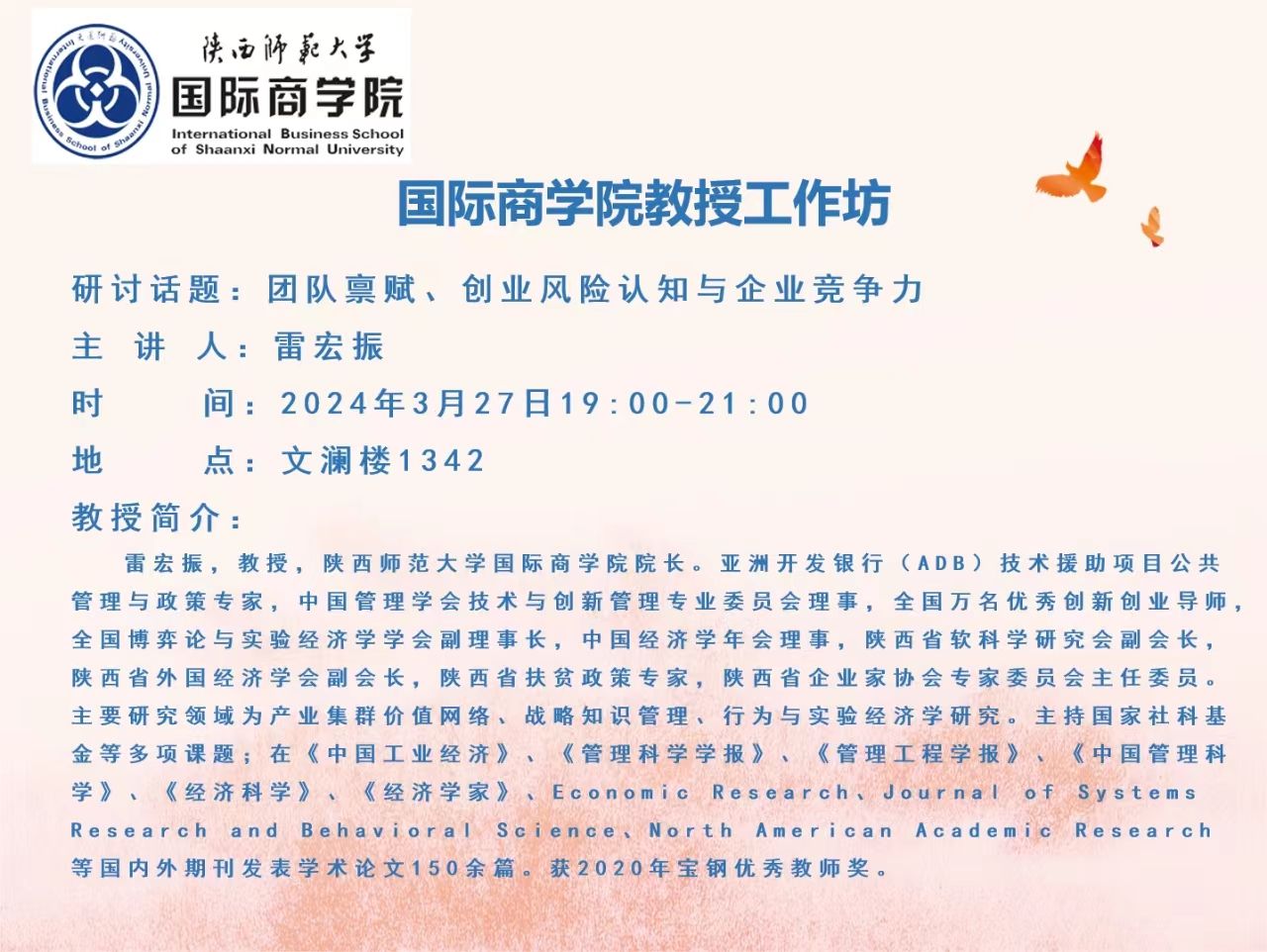 bw必威西汉姆联官方网站教授工作坊——团队禀赋、创业风险认知与企业竞争力