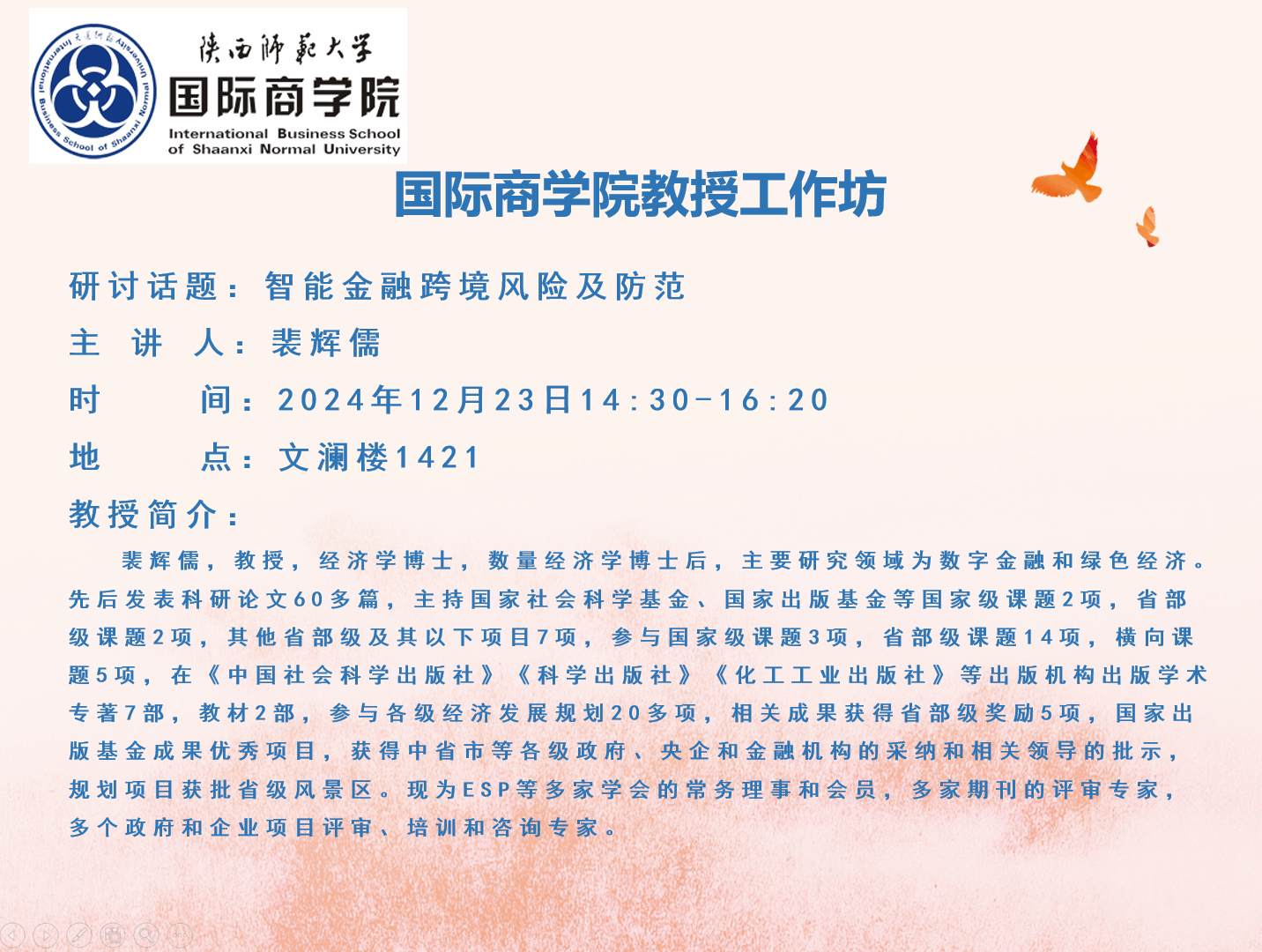 bw必威西汉姆联官方网站教授工作坊——智能金融跨境风险及防范