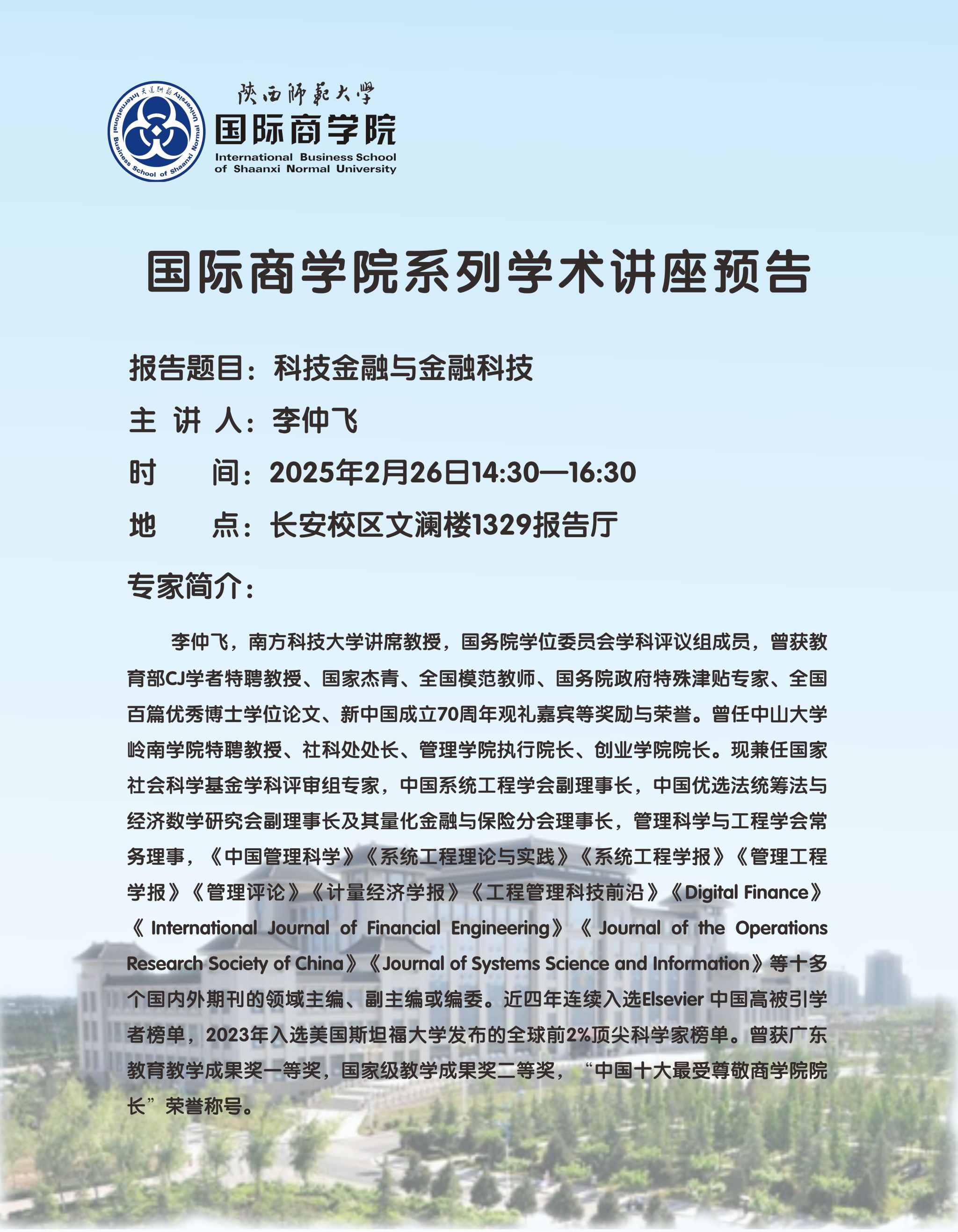 学术讲座预告——科技金融与金融科技
