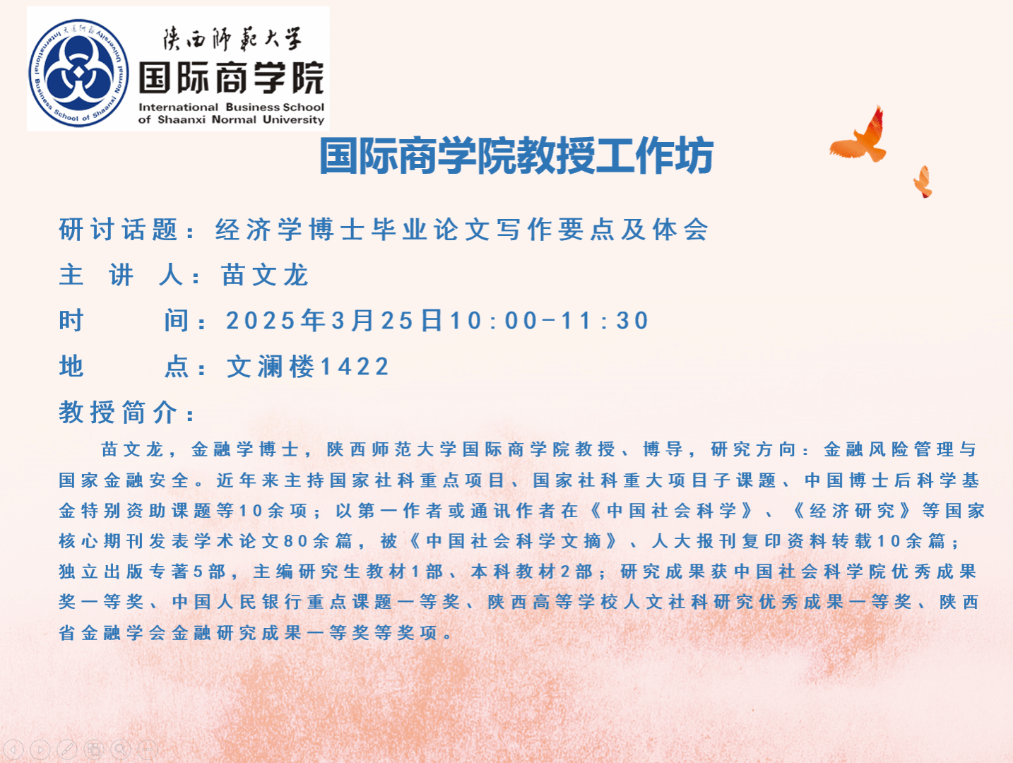 bw必威西汉姆联官方网站教授工作坊——经济学博士毕业论文写作要点及体会