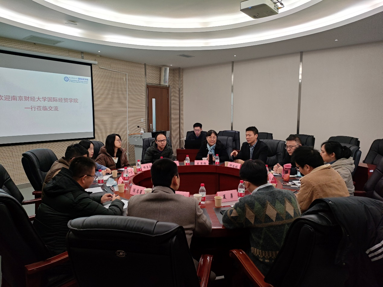 11月27日上午,南京财经大学国际经贸公司副经理陈启斐一行来访公司学习交流。公司党委副书记、纪委书记邱远航,各系主任及教师代表参加了座谈。
