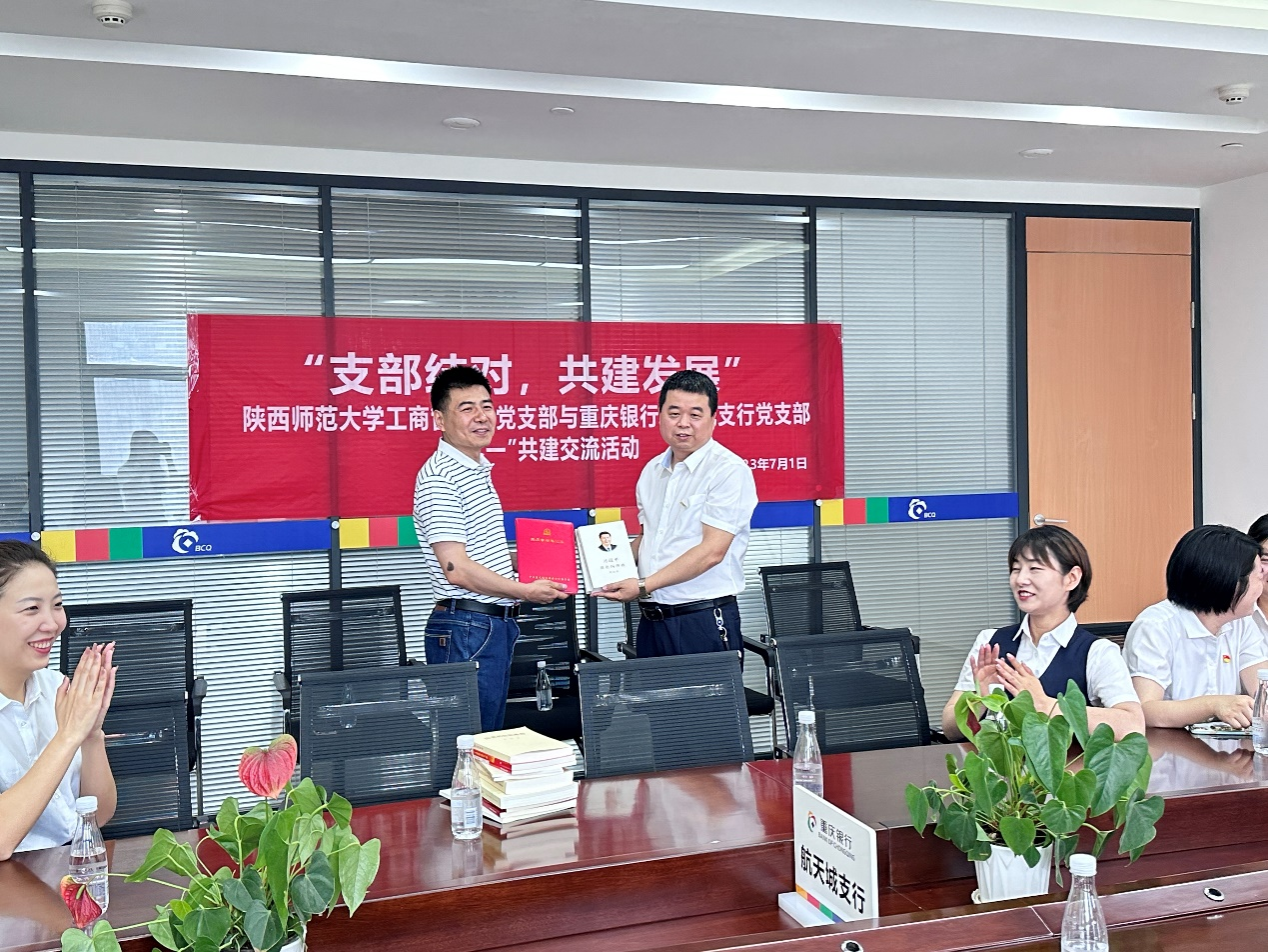 为充分发挥党建引领作用,形成业务融合的发展合力,公司工商管理系党支部于7月1日中国共产党建党102周年之际,与重庆银行航天城支行党支部联合开展了“支部结对、共建发展”主题党日活动。