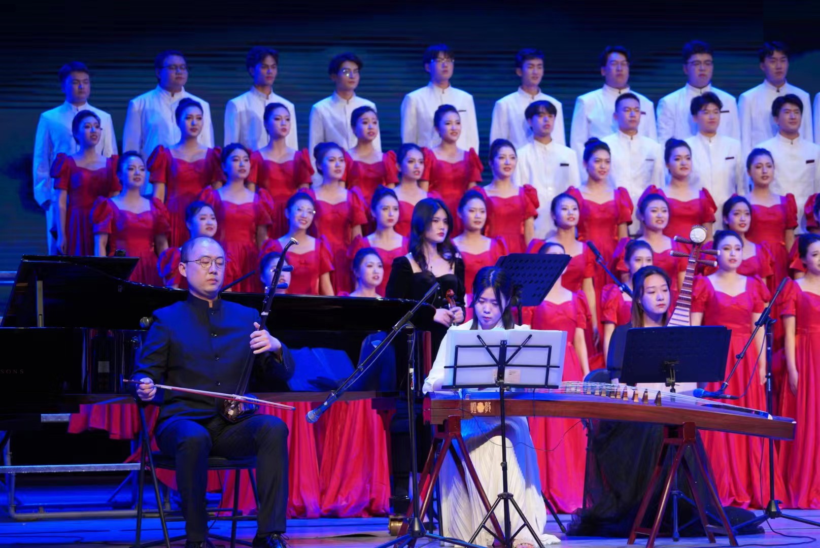 唱响青年正能量,礼赞奋进新时代。公司合唱团用歌声表达了爱党爱国爱校之情,展现了商院学子蓬勃向上、团结奋进的精神风采。商院学子将继续秉持初心,不负青春韶华,跟随党的领导,以阔步昂扬的姿态迈向新征程,以更加奋发有为的精神风貌勇担使命任务,奏响时代新篇章。