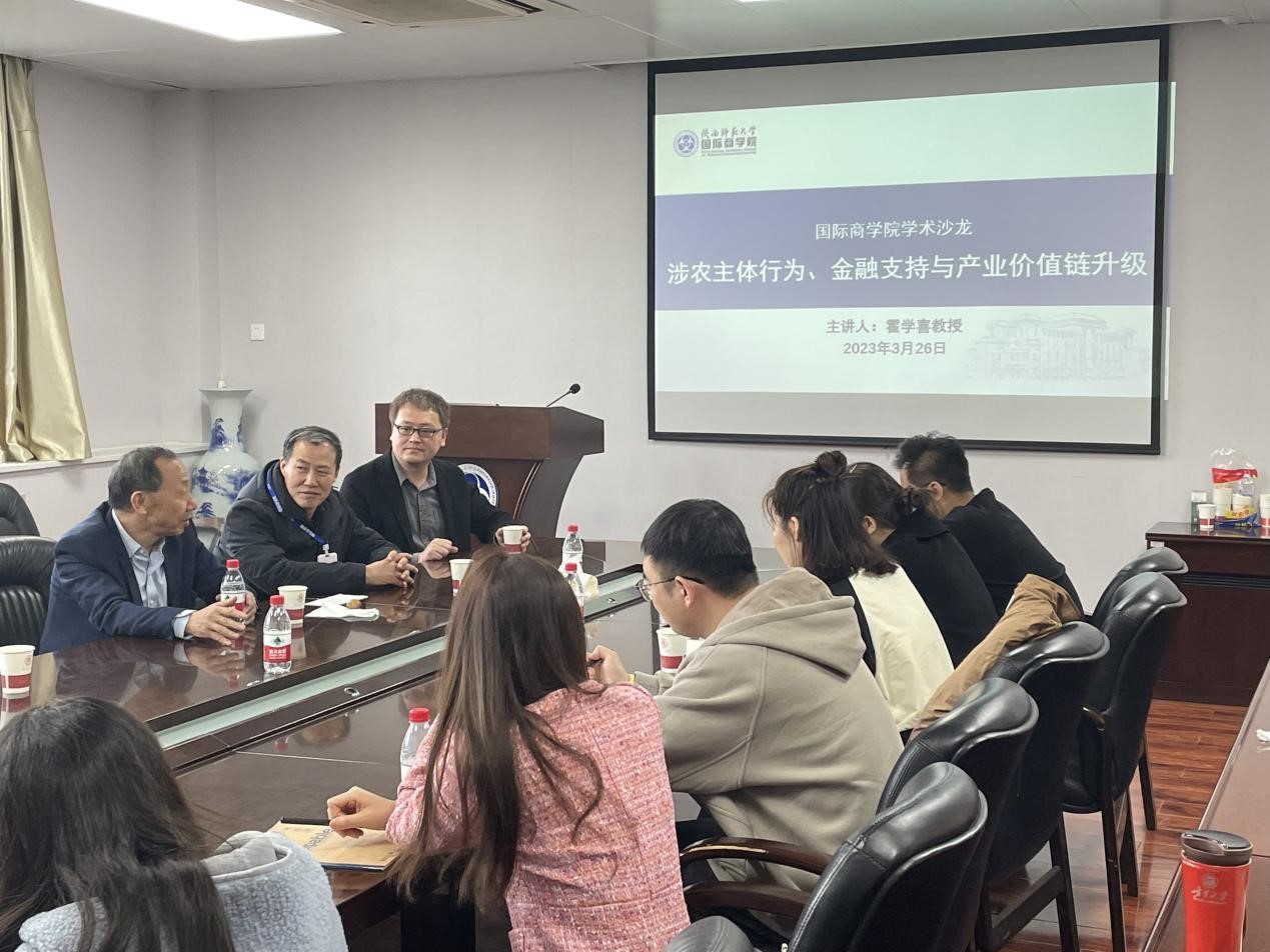 日下午,由bw必威西汉姆联官方网站扶贫政策与评估研究中心主办,主题为《涉农主体行为、金融支持与产业价值链升级》的学术沙龙在文澜楼举行,主讲人为西北农林科技大学的霍学喜教授。