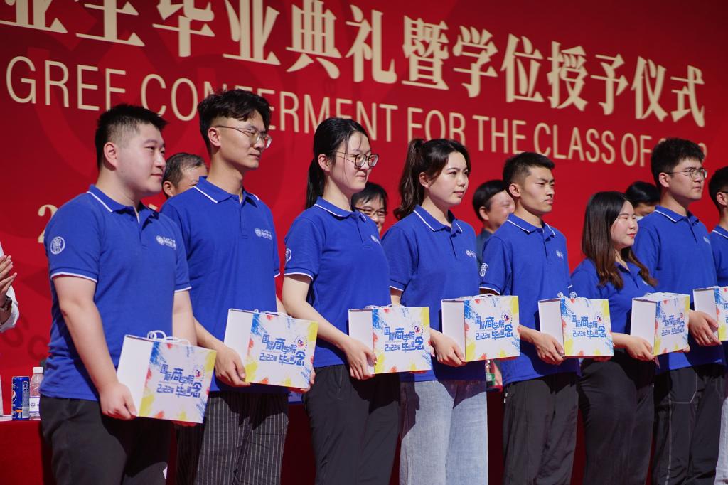 典礼在庄严的国歌声中拉开帷幕。会上,张淑惠宣读了研究生、本科生学位授予决定,邱远航宣读了优秀毕业研究生名单,杨静宣读了优秀毕业本科生名单。随后,黎建强教授为毕业生们送上毕业祝福和嘱托,他希望同学们带着知识,带着母校的殷切期望开启人生新的篇章。经理雷宏振代表公司向各位毕业生表达了真挚的祝福,向悉心指导同学们成长成才的各位老师致以诚挚的感谢,同时,他向全体毕业生提出三点希望:一是希望毕业生与公司同心同德,同向同行,追求卓越,追求进步;二是希望毕业生能用自己的聪明才智创造财富,报答社会,并关心需要帮助的人;三是希望毕业生能谨记天道酬勤的院训,勤奋求实,在与祖国同频共振中汲取前行力量,放飞青春梦想。