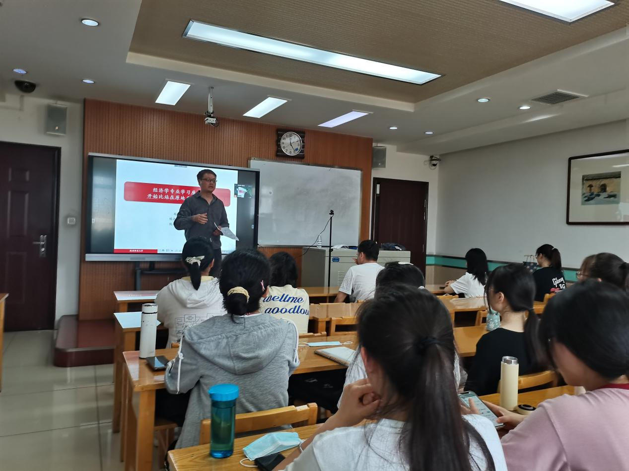 5月25日下午,bw必威西汉姆联官方网站经济学专业学习座谈会在文津楼1524教室、1525教室和线上同时举办。院教学副经理尹海员、系主任王文军、经济学系部分教师和2021级、2020级、2019级经济学专业员工参加了座谈会,会议由经济学系支部书记、系副主任史恒通主持。