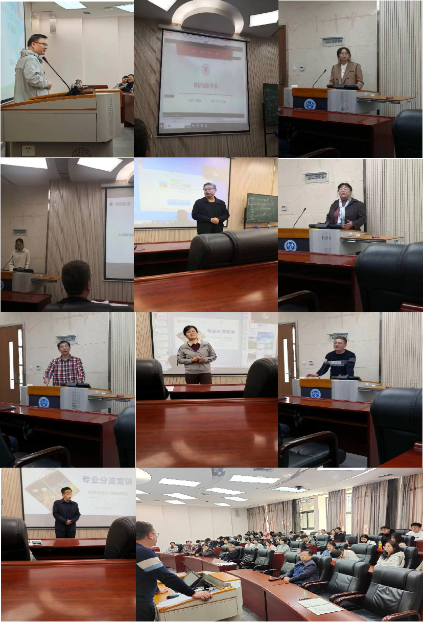 随后,在优秀员工经验分享环节,首先由大四在读“保研”代表李璐冰同学介绍了经济学专业在保研方面的优势和特点,并为同学们讲解经济学专业在申请保研过程中应该注意的问题;其次,大四在读“考研”代表胡三琼同学介绍了经济学专业所学课程对于成功通过研究生考试的意义,并建议大一新生在学习经济学过程中应该从个人职业和能力提升两方面强化综合能力的形成;最后,大四在读“就业”代表杨柳同学,根据自身的成功求职经历,介绍了当前经济学专业毕业生就业方向以及未来薪资状况,并建议同学们为提高就业几率,要积极利用课余时间参加社会实践、实习、学科竞赛。