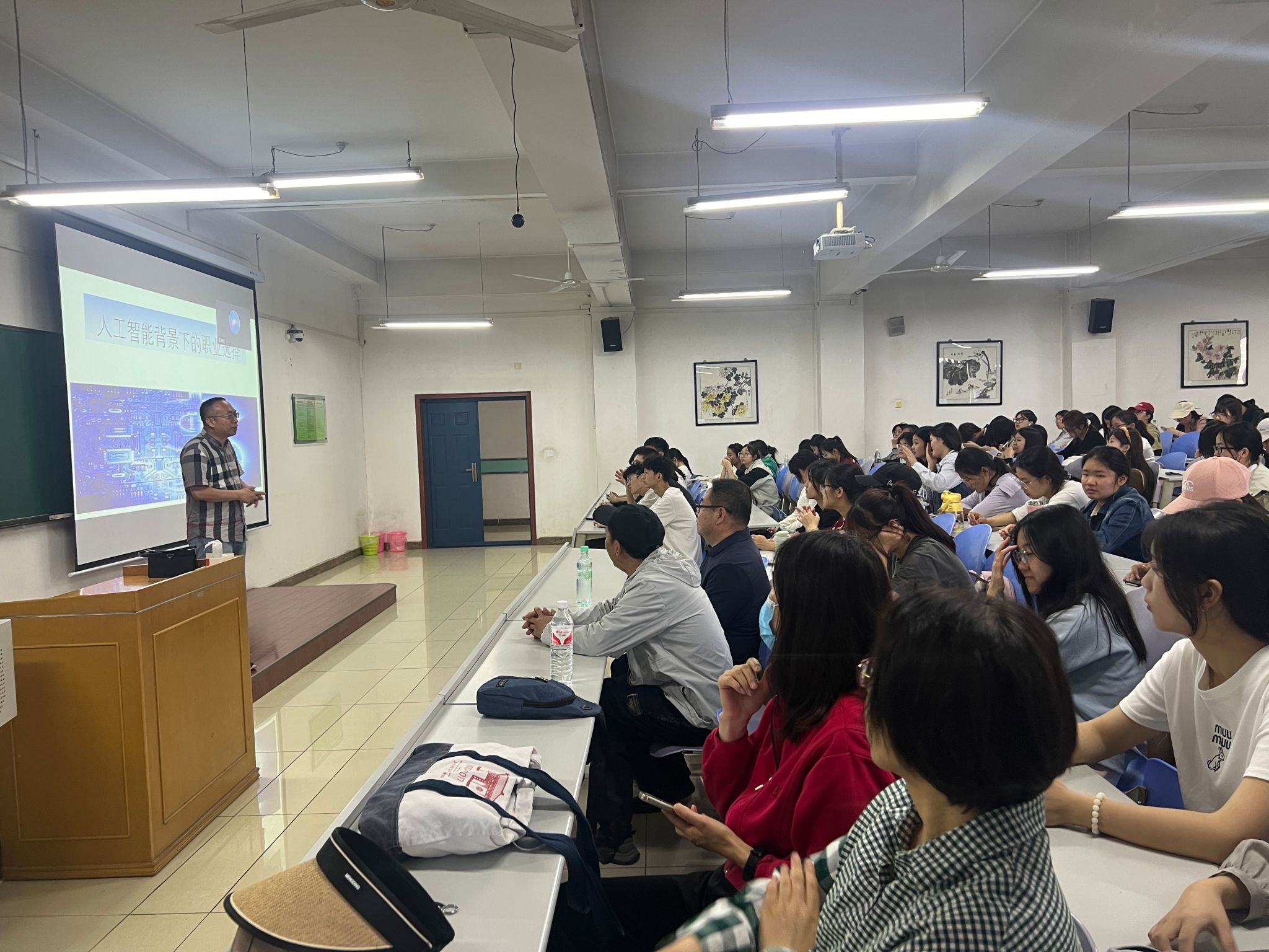 本次专题活动旨在人工智能的快速发展以及我国面临经济下行压力的现实背景下,帮助同学们客观理性分析并合理开展学业及职业规划。金融系教师基于对金融学科理解围绕这一主题与同学们分享观点。梁锶老师首先向同学们简要介绍金融系的创建历程、雄厚的团队力量以及合理全面的课程设置。裴辉儒教授以《人工智能背景下的职业选择》为题做主旨报告,报告内容详实客观,从而帮助同学们在人工智能的背景下结合自身优势和经济发展的客观要求制定职业规划。苗文龙教授以扎实的学术功底和丰富的金融从业经验,论证金融学科的性质与职业特征,据此提醒同学们客观冷静的选择专业,不随大流不盲目跟风,并勉励同学们要努力上进,打造属于自己的美好前程。曹培慎老师和胡秋灵老师以自身近40年的教师生涯向同学们讲述专业选择的重要性,以及在培养员工过程中的感悟,为同学们加油打气。霍源源老师以自己跨专业的学习经历向大家论述,金融学是一门既有科学的理论基础又有广阔实践土壤的“顶天立地”的学科,也是“大有可为”的行业。李淑娟老师分享了她在指导员工就业过程中的体会,论述金融学丰富的就业口径和广阔的就业前景。