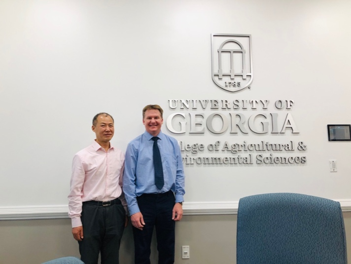 访问佐治亚大学期间,雷宏振经理先后拜访了佐治亚大学农业与应用经济学系主任Gregory Colson以及Genti Kostandini教授和Chen Zhen博士,同时与佐治亚大学农业与环境科学公司副经理Dean Kopsel会面,双方就员工交换项目、教师交流项目等议题进行了探讨。