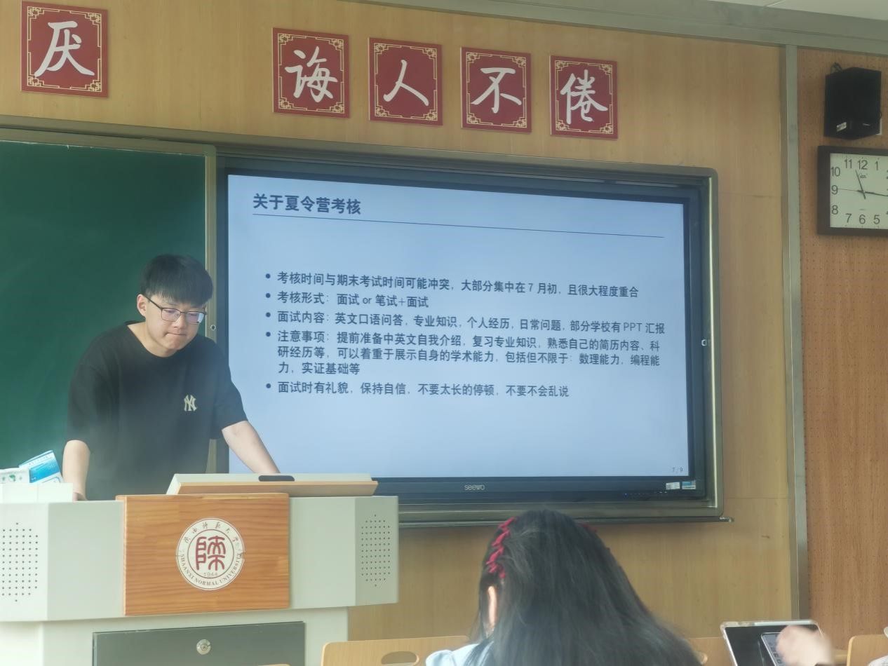 分享会围绕海外留学、国内考研和职场就业三大主题展开。在留学这一板块,申珍宁学姐已被香港大学录取,她为我们详细介绍了名校申请的流程、面试经验、跨专业申请优势以及选校策略和雅思的备考方法。在职场就业上,张林波学长是21级本科毕业生,即将入职理想汽车,他为我们详细介绍了求职需要注意的事项,信息获取、修改简历、面试准备等以及收到offer后应该做什么以及注意的事项,帮助同学们提升就业竞争力。