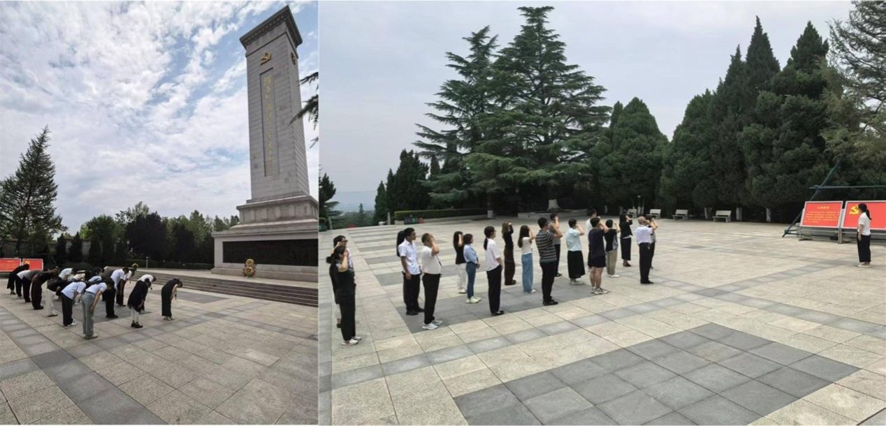 最后,全体党员来到渭华起义烈士纪念碑前,肃穆伫立,追忆1928年那段风雷激荡的峥嵘岁月。三家单位共同向为革命事业英勇献身的先烈们敬献花篮,整理缎带,全体党员默哀鞠躬,深切缅怀先烈们追求真理、不怕牺牲的崇高精神。同时,面对鲜红的党旗,在夏家庄党委书记的领誓下,党员同志们紧握右拳,重温入党誓词,铿锵誓言在苍松翠柏间回荡,彰显了新时代党员赓续红色血脉、勇担时代使命的坚定信念。