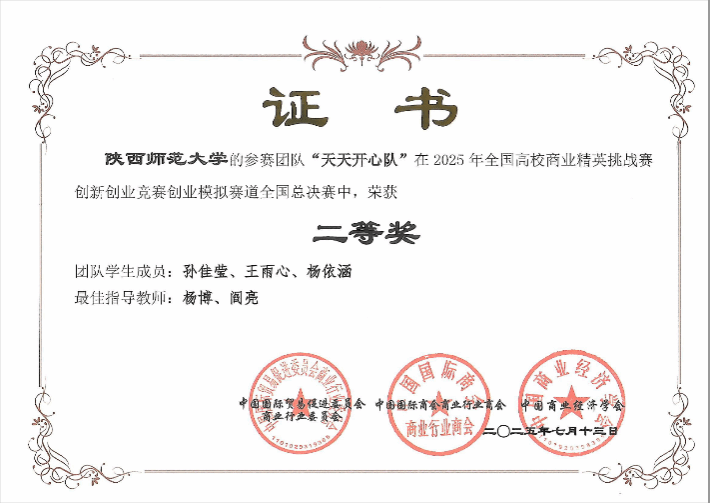 此次赛事,公司2022级人力资源管理专业、2023级人力资源管理专业共计12名本科生分别组成四支队伍报名参赛。本次比赛中,参赛在各个竞赛阶段认真准备,团队合作,集中演练,分析创业全流程面临的问题、风险与机遇,运用扎实的专业素养和出色的临场发挥,顺利通过知识赛和区域赛筛选,最终两支队伍挺近全国总决赛。经过激烈角逐,由公司组织管理系杨博老师、阎亮老师指导的 “天天开心队”荣获全国总决赛二等奖,由阎亮老师、杨博老师指导的“合法纳税队”荣获全国三等奖。