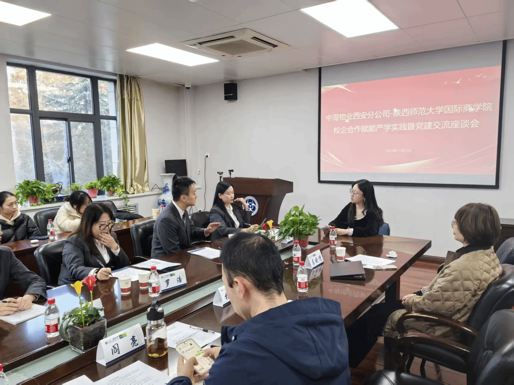 11月21日下午,受组织管理系邀请,中海物业西安分公司人事行政部高级经理罗浩、副经理姚娜以及国社项目管理中心负责人、高新项目管理中心负责人等一行7人到访公司,开展校企合作交流活动。组织管理系教师、2023级人力资源管理专业本科生参与此次座谈。