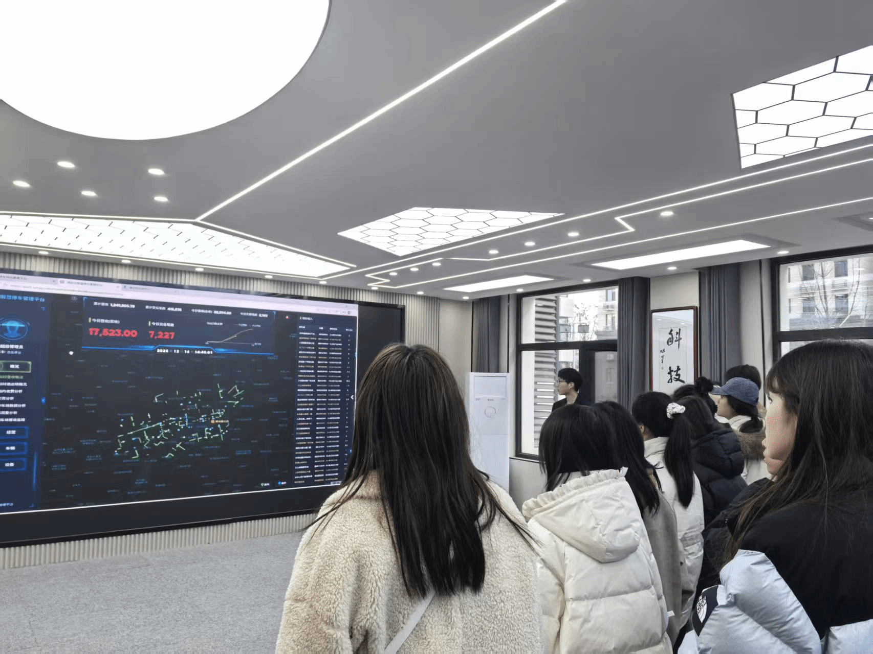 在咸阳停车公司智慧停车系统参观大厅,师生们沉浸式体验了“停车+”智慧停车充电信息服务系统。通过工作人员的专业讲解与现场演示,了解到该系统已整合207处停车场、15063个泊车位及189个充电桩资源,实现车位查询、线上缴费、充电服务一体化办理,不仅有效缓解了市民“停车难、充电难”的民生痛点,更成功实现数据资产化突破,成为陕西省首例智慧停车及充电结合的数据资产入表范例。同学们认真观摩系统后台数据调度与分析流程,对数字经济与实体经济融合发展的实践路径有了直观认知。