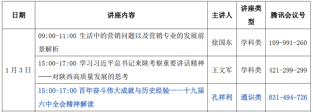 讲座时间:1月3日 15:00-17:00