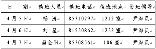 值班时间:上午:8:30—11:30,下午:14:30—17:30。