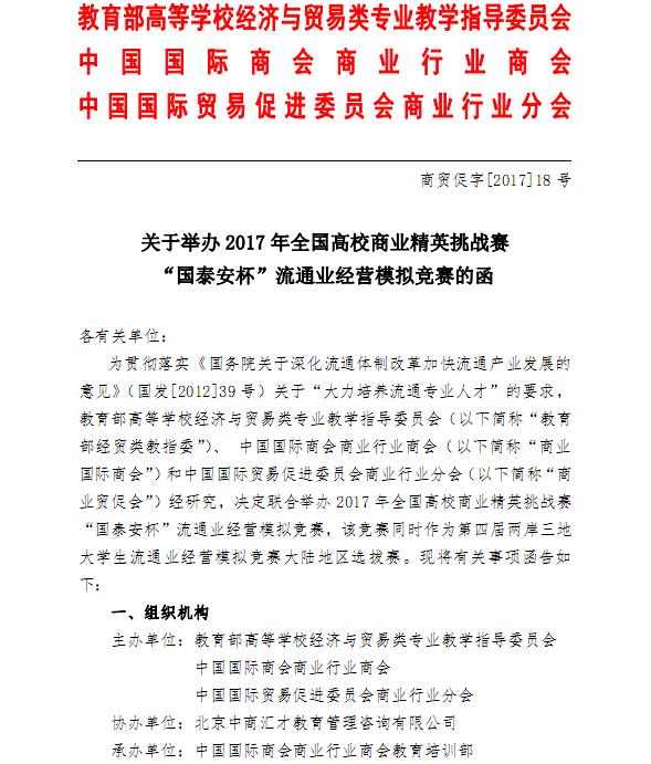 关于举办2017年全国高校商业精英挑战赛“国泰安杯”流通业经营模拟竞赛的函