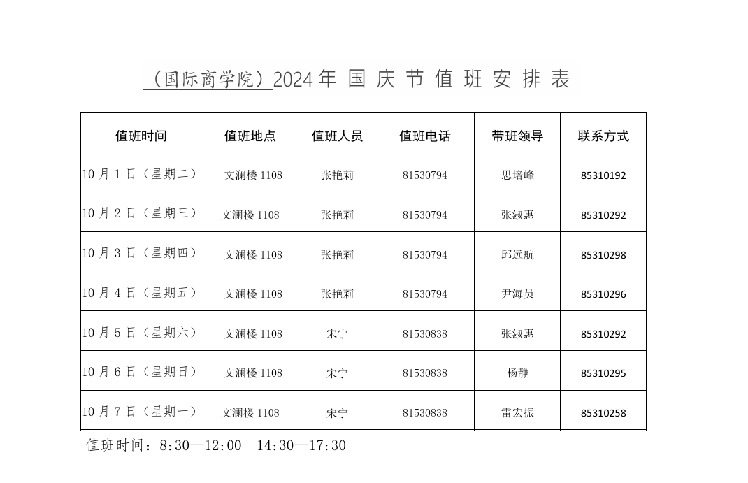 bw必威西汉姆联官方网站2024年国庆节值班安排表